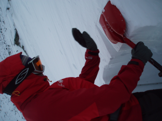 Tap Test at the main profile site for the day. Easterly aspect. Significant amount of windblown snow but stability moderate to good.