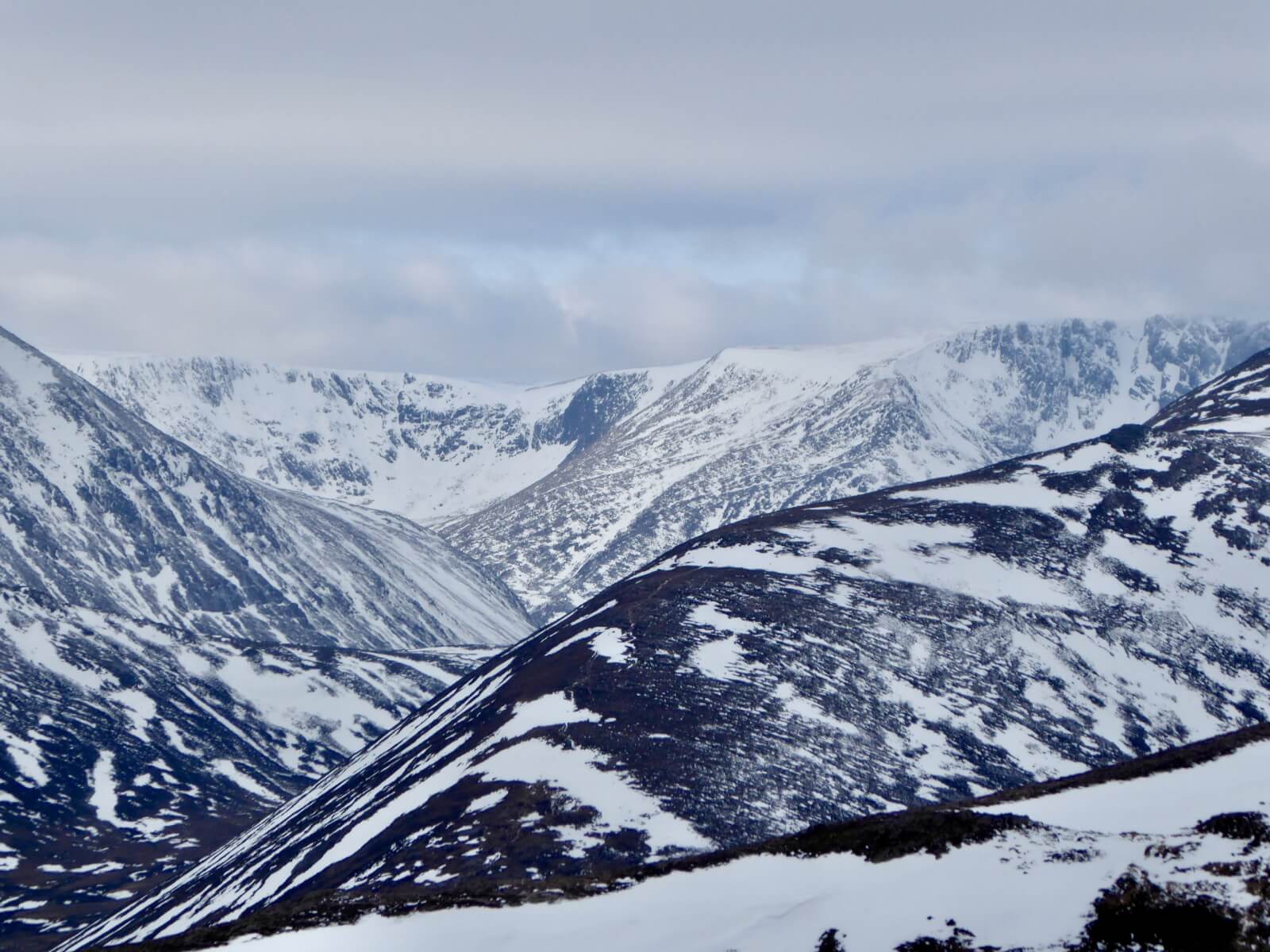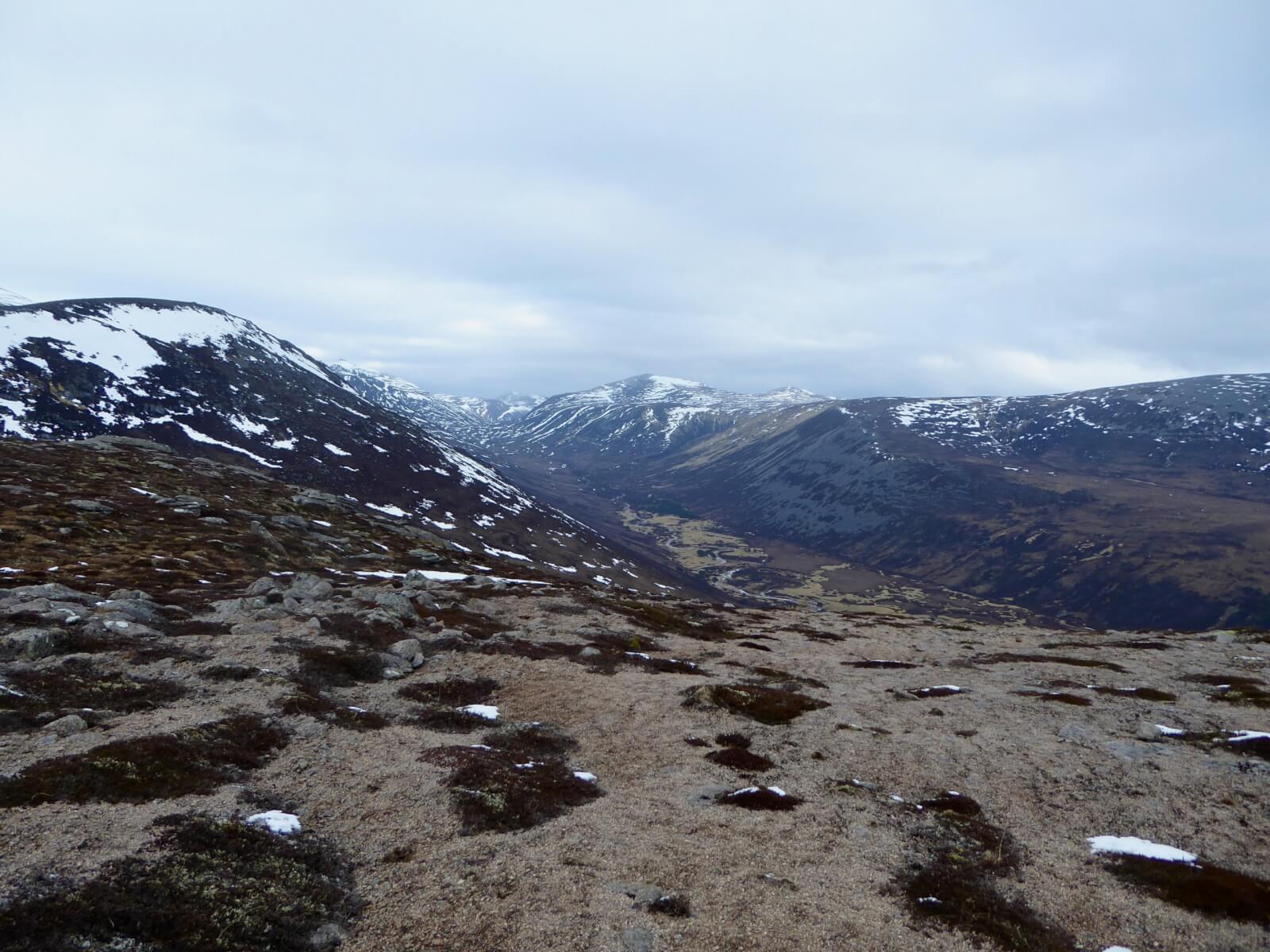 Garbh Coire and Coire Bhrochain of Braeriach fame. The ridge in the foreground forms part of Sron Riach.