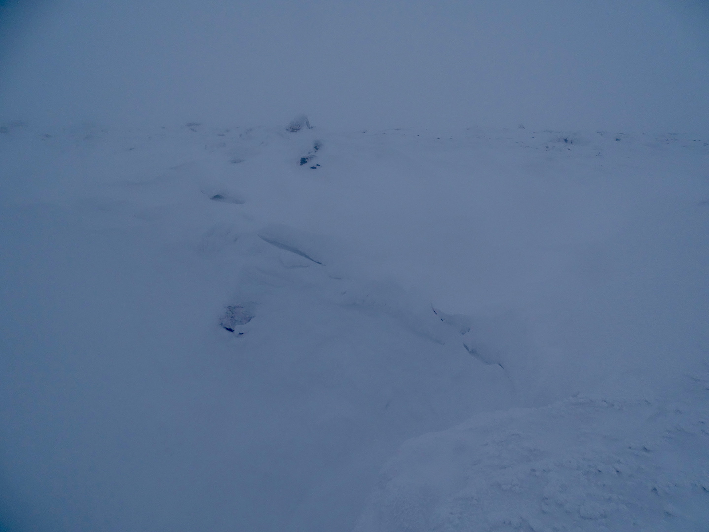 It was a seriously foggy day with no viz above 700 metres. So apologies – no new photos of Lochnagar – well not any that give you a view! It was pretty chilly on the tops as well with the moisture coming out of the clouds freezing onto hats, hair, jackets etc. Despite the lack of visibility I could hear climbers in the corrie and climbing routes in the Southern Sector. The Glas Allt Shiel waterfall has thin ice on its outer edges, with the fall sitting at around 650m that bodes well for water courses at a higher altitude. There’s also quite a bit of water-ice on higher level footpaths which keeps life interesting. The old exposed snow is pretty firm as well….. “look well to each step; and from the beginning think what may be the end.” Edward Whymper.