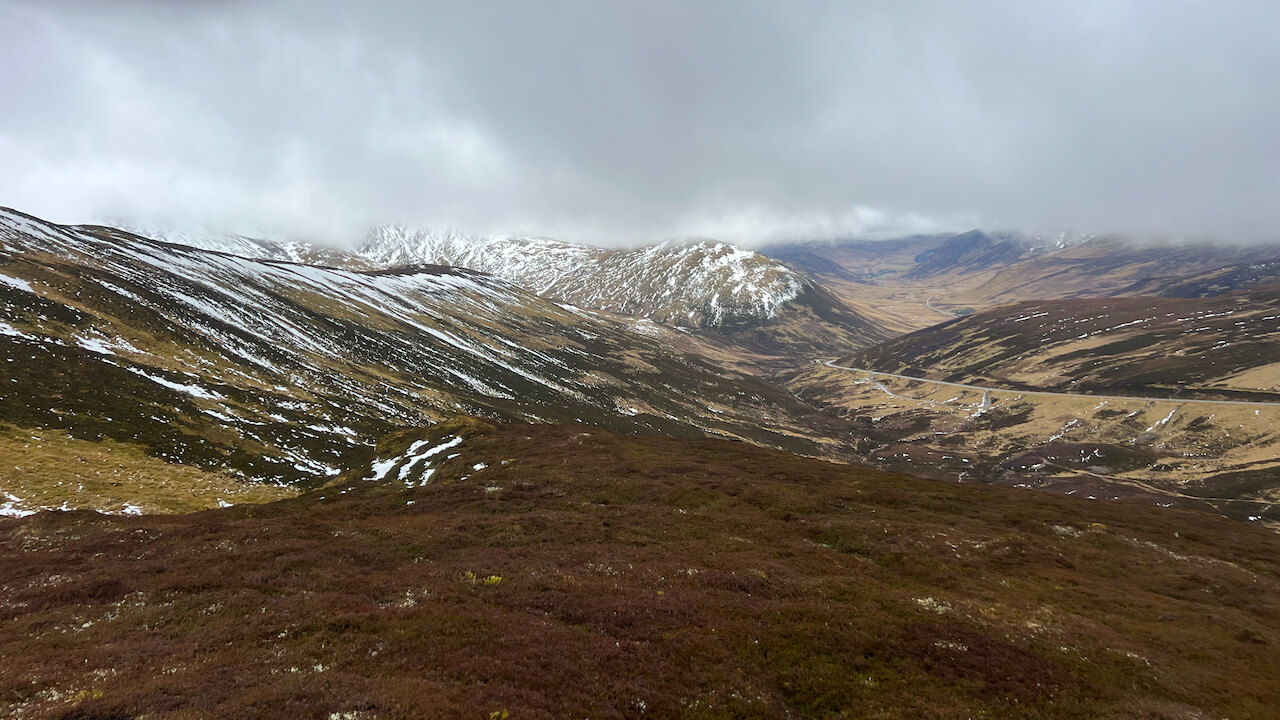A rainy and mild day with a rapidly diminishing snowpack. A bit of a battle in the winds today and visibility was quite poor. Had a brief clearing to the South and a view down Gleann Beag.