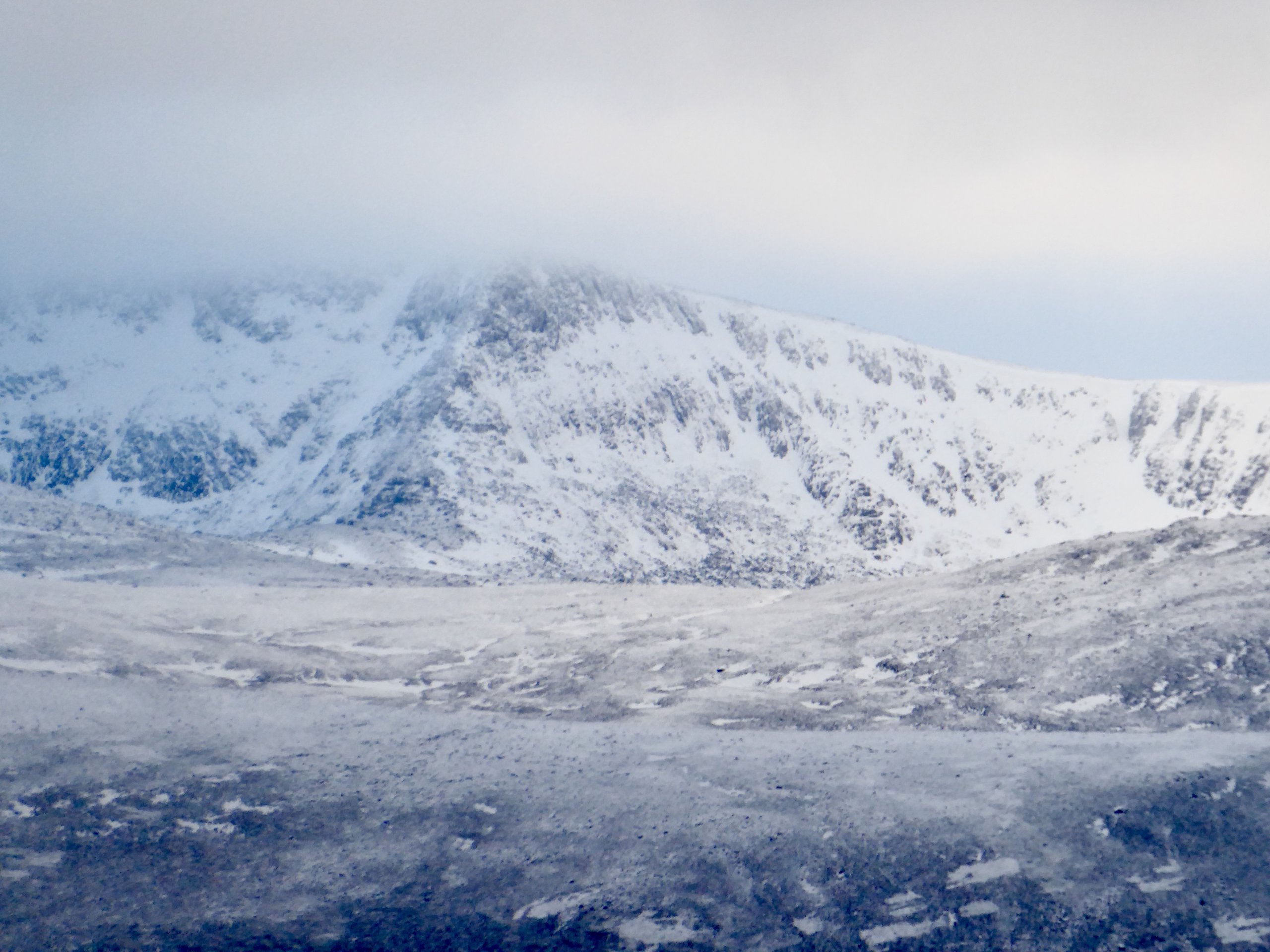 Considering that we haven’t really had any significant snowfall and mainly moderate winds, if you compare today’s photo of Coire Fionn to the one on the 10th February, the cornice has grown in length significantly.