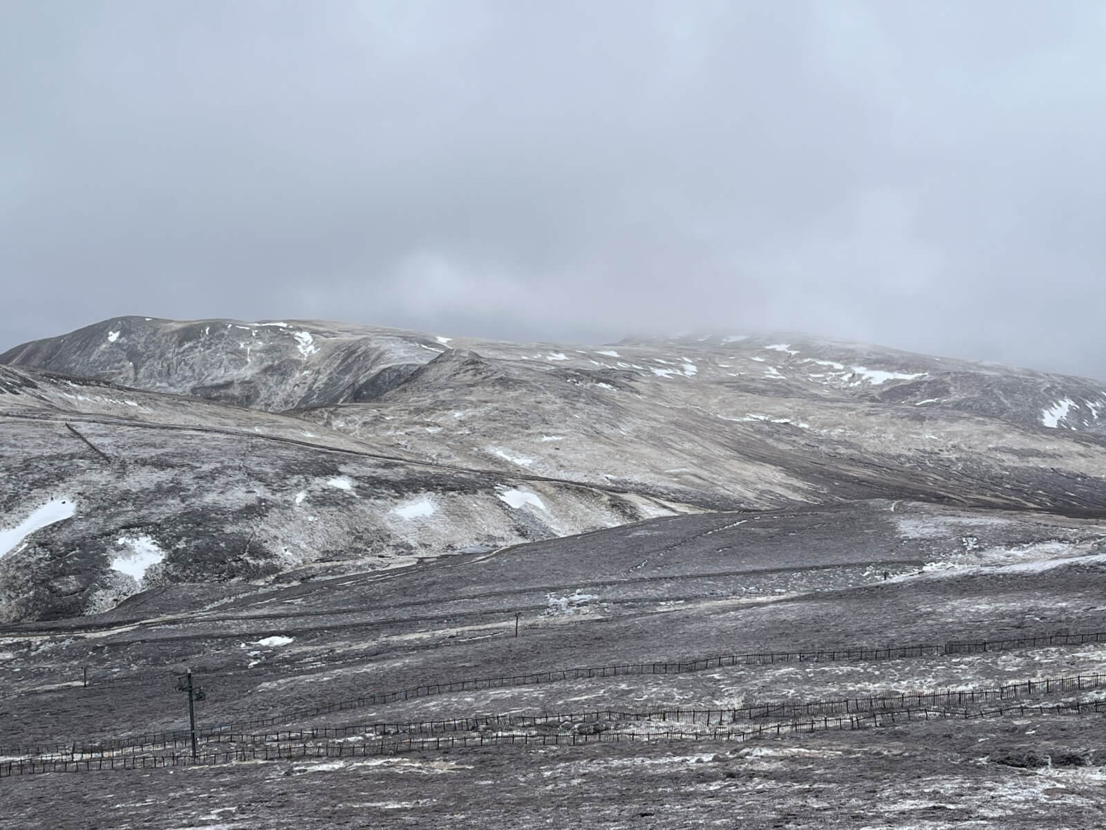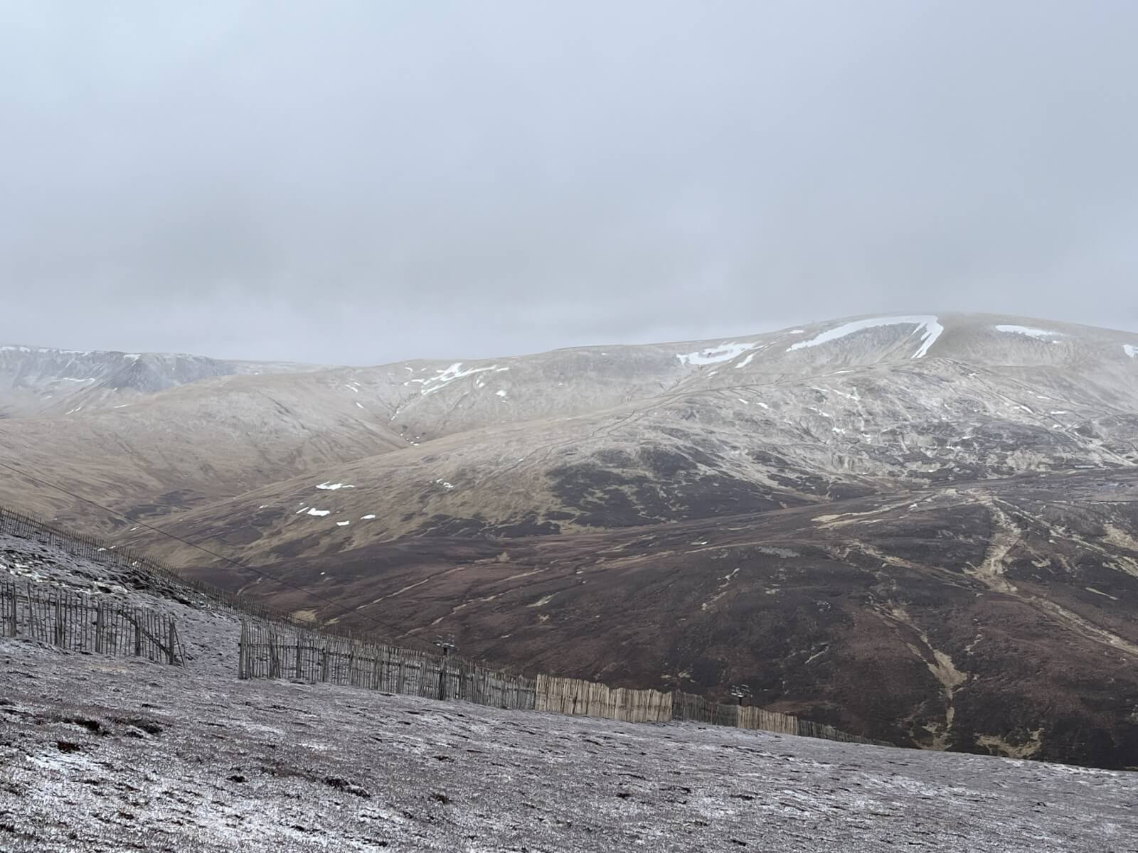 Winter is trying to return, temperatures dropped overnight and some squally showers arrived this morning to give a light dusting of snow on the Glenshee ski area.