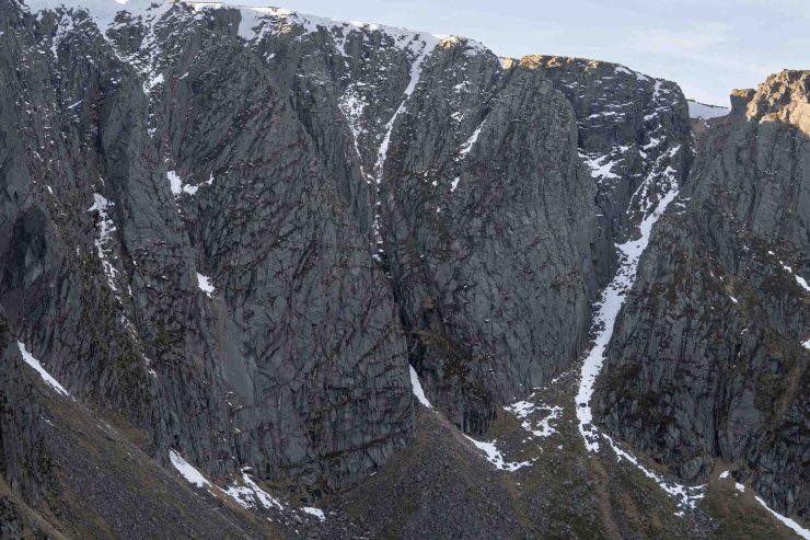 The main gully of the Black Spout. Above and out of shot the Right Spout is breaking but the Left hand is complete.