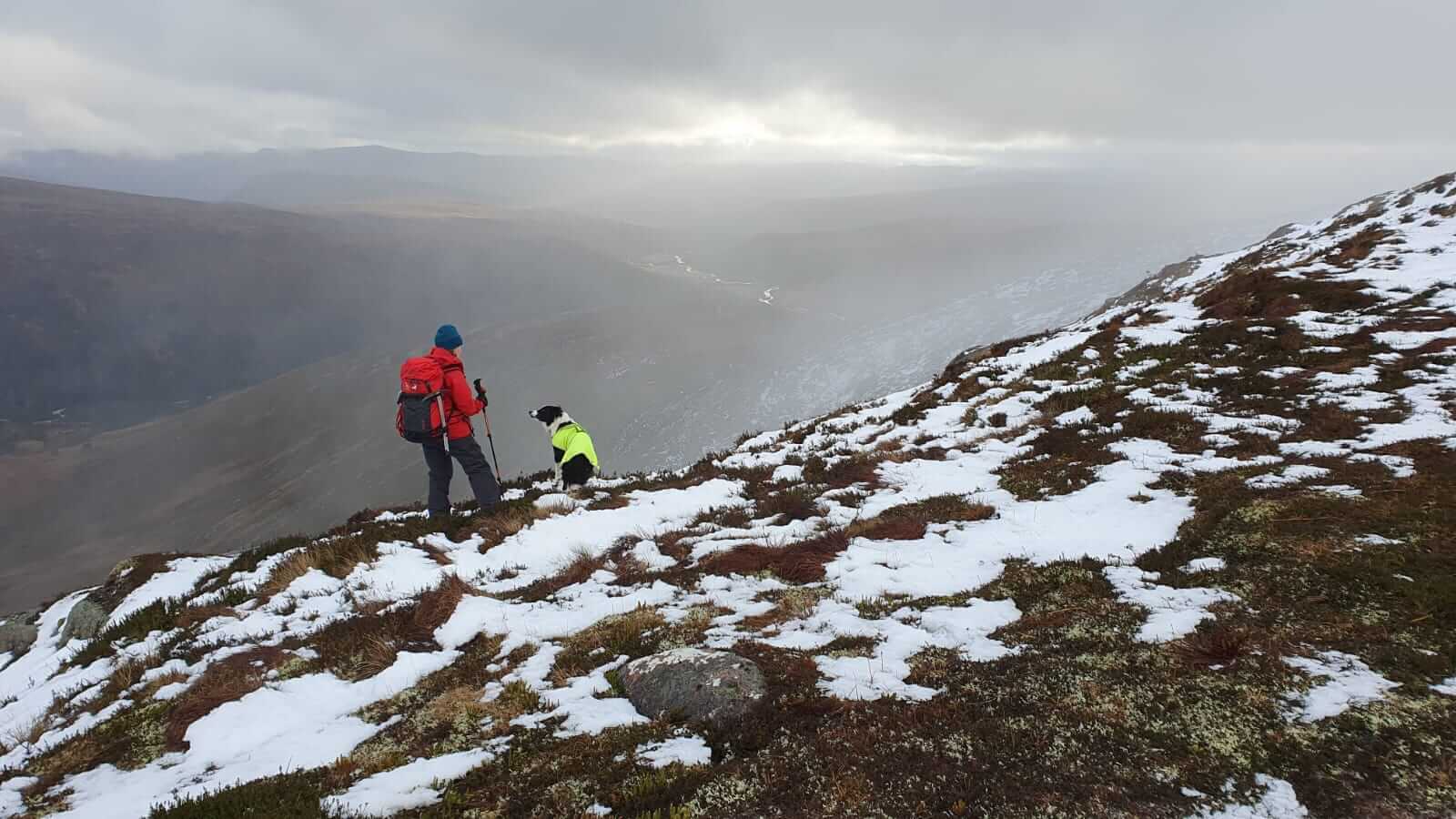 Light precipitation first thing, falling as snow on the highest summits. Generally there has been snow loss at lower elevations with patchy wet snow below 1000 metres. Firmer conditions on the higher summits due to a period of lower temperatures overnight. Despite promising to clear up, banks of clouds kept rolling in to ensure that no clear views of the summits were available.