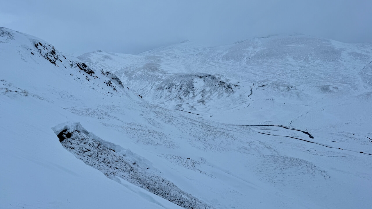 There is good snow cover in the area but this varies from the Southern end near Glenshee to greater and more widespread snow towards Ben Avon and Ben Macdui. Hard going on foot but with some consolidation taking place allowing better conditions for ski touring. A complex picture though regarding instabilities, with weak layers persisting at lower elevations! Three recent, reported avalanches have taken place at elevations around 5-600m on SE aspects, two were deer triggered! This was due to a weak layer that remains in the localised accumulations with the avalanche crownwall on the apex of steep convexities. Today we investigated the avalanche above the A93 before the Devils Elbow. A large avalanche size 2-3 ( enough snow to bury a person and potentially a car) had released on a layer on buried surface hoar and sugar like facet grains which was 30 cm or so below the surface which then stepped don to a weak layer on the ground!  Avalanche crown wall 1.5m deep and around 60 m wide and travelled around 100m downslope.