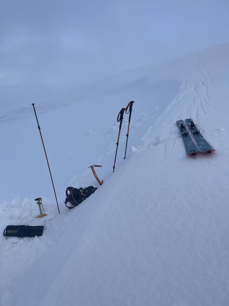 Thick cloud first thing and it felt like I was feeling my way around the inside of a ping pong ball, but eventually the cloud cleared to give a sunny afternoon. It wasn’t long before photos started coming our way of a large avalanche on the West aspect of Glas Maol. The debris from the right hand section is reported to have travelled all the way to the valley floor.