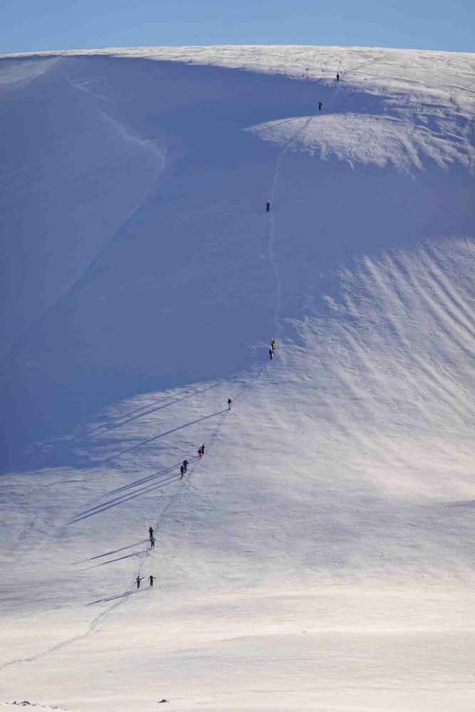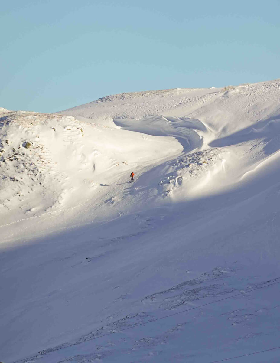 A busy track to Glas Maol. As it was very icy after yesterday’s strong Northerlies, most ski tourers walked up.