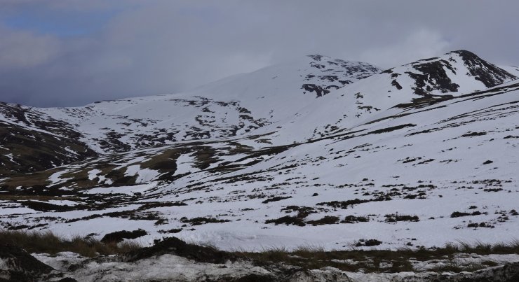 Carn an Tuirc, 1019m on left, Sron na Gaoithe on right. Still great cover on these West aspects and above 600 metres.