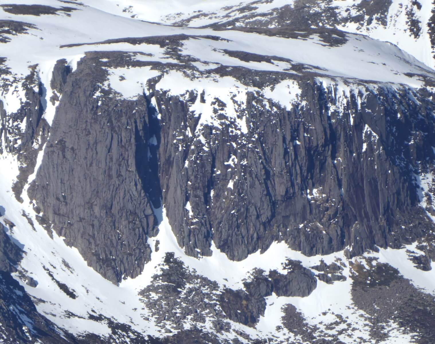 Coire rim of Coire an Dubh-lochan with various residual cornices present.