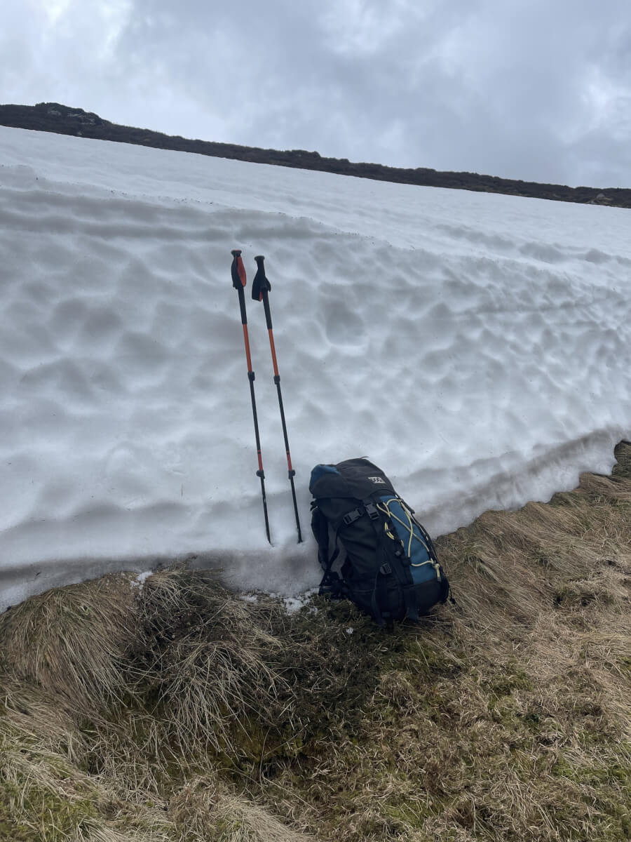 Surprisingly deep snow patch at 650m. This is the exception – very little snow now exists at this altitude.