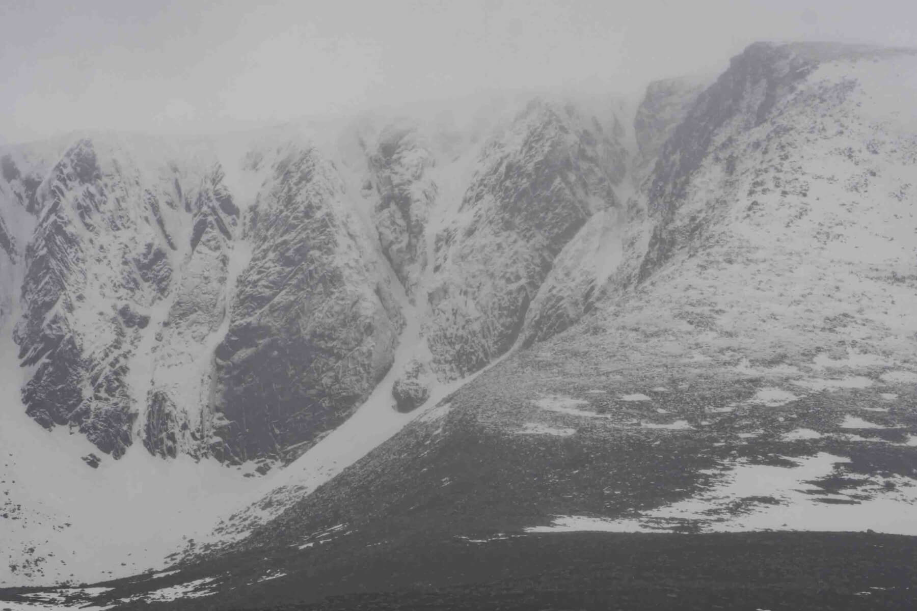 A view of Lochnagar Corrie this morning in the rain.