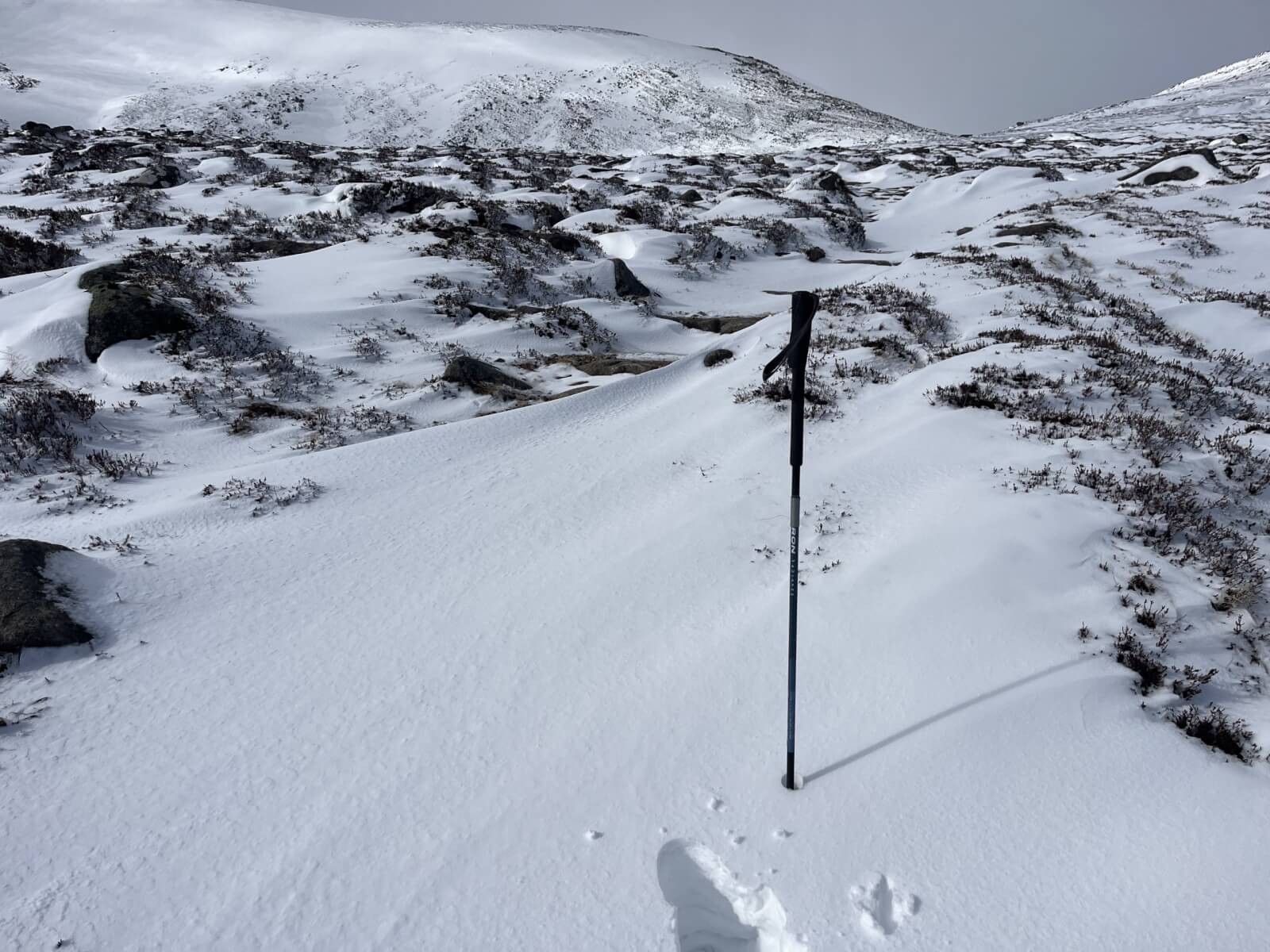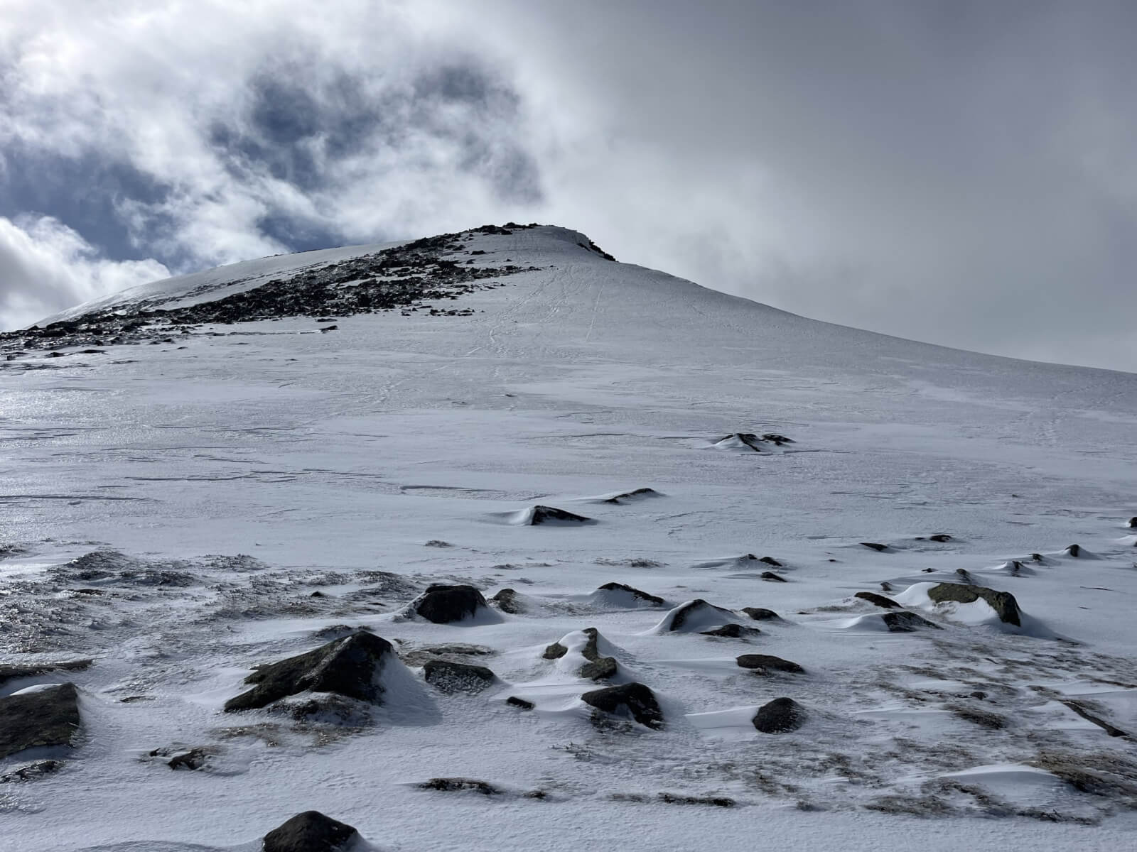 Approaching the Lochnagar Col with Meikle Pap. Thin snow cover on mostly bare ground below 800 meters.
