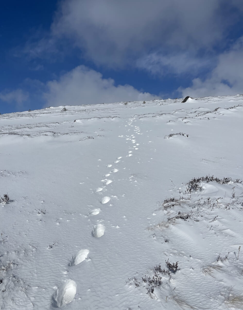 Trail breaking required in places. The path is under there… somewhere!