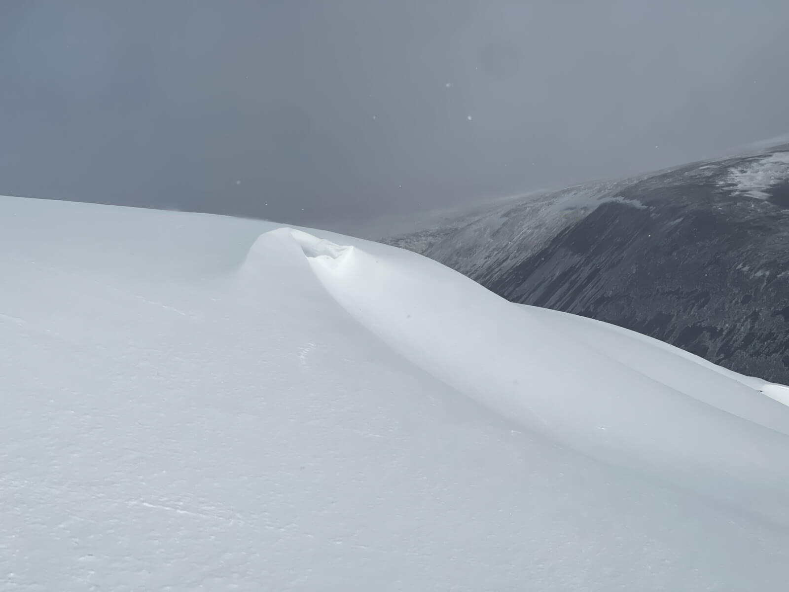 North of the River Dee, the weather ranged from blue sky and sunshine through to menacing grey skies and squally snow showers. Gale force winds made walking conditions difficult and the wind chill on exposed skin was severe. Due to the winds, many areas have very shallow snow with drifts only forming in the most wind sheltered locations. Here though depth has accumulated and stability is poor.